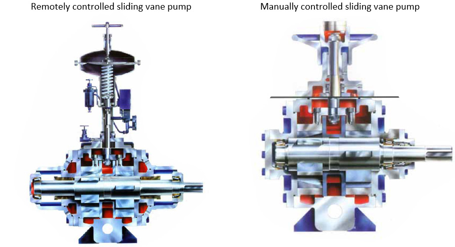 The patented “fixed speed infinitely variable flow” design feature of the Plenty Mirrlees Rotary Sliding Vane pump will be of great interest to users that require a pump that delivers a variable flow (zero to full design volumetric flow) without the need to install expensive Variable speed drives, this is made possible by use of an automatic actuator or manual handwheel to increase or decrease the eccentricity of the shaft to rotor mechanism. The design feature further facilitates reversal of the flow if required.