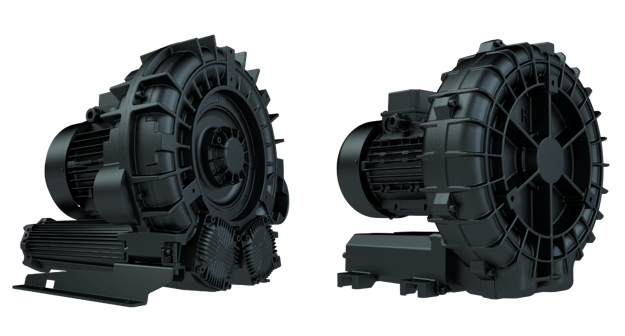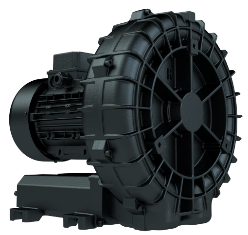 A Side Channel Blower consists of an impeller with blades and a housing with a peripheral toroidal channel. When used, the impeller rotates without touching the surrounding parts, and so wear-and-tear is avoided and lubrication is no longer needed. The flow is channelled inward and outward by means of suitable silencers specially designed to reduce blower noise.